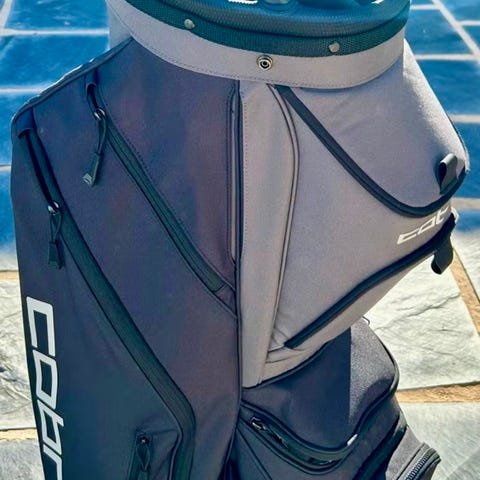 Clubbagen har 2 tørre lommer. Topptrekk, 14 hull for å separere golfkøllene samt masse langringsplass. Praktisk kald/varmlomme. Easy lock system som gjør at man slipper å bruke strikken i bunn av bagen. Den settes enkelt fast med 2 easy lock pinner.