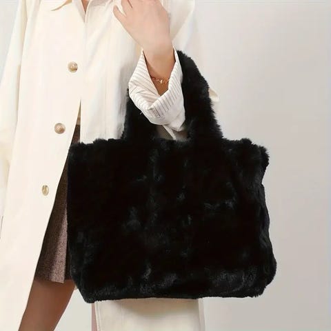 Selge denne fine vesken i fuskepels. Fargen heter rasberry red. Såvidt brukt og i god stand.