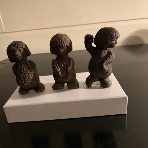 De har vært limt, så noen limrester under føttene.