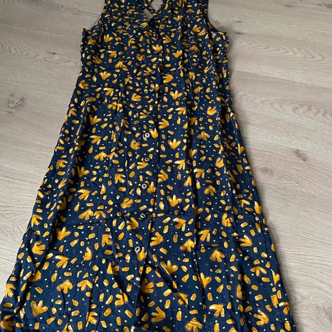 Pen kjole fra Indiska. Str. S. 50% bomull, 50% Modal. Kun prøvd. Som ny. Røyk- og dyrefritt. Selger kr.180,-. Pris er satt. Tar Vipps.