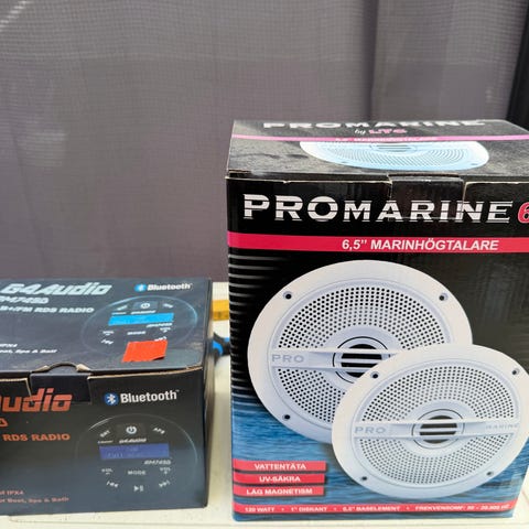 6,5" toveis marinehøyttaler med innebygget forsterker. Det skal kun tilkobles 12V til høyttalerne så kobler du telefon eller annen avspillingsenhet til via Bluetooth.