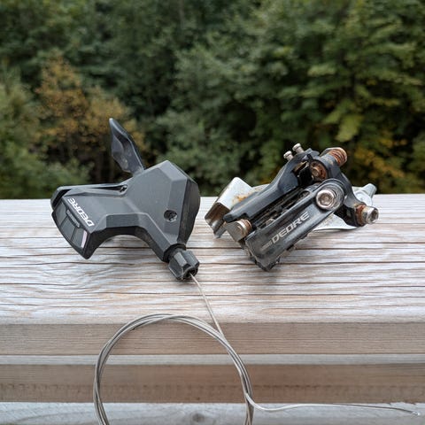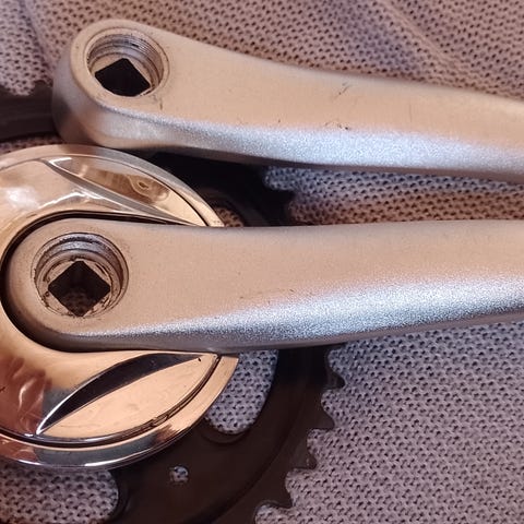 Ubrukt krank, som passer til sykler med brede krankhus. Det følger med verktøy for Shimano Direct Mount, samt skimser for bruk for smalere kranker.