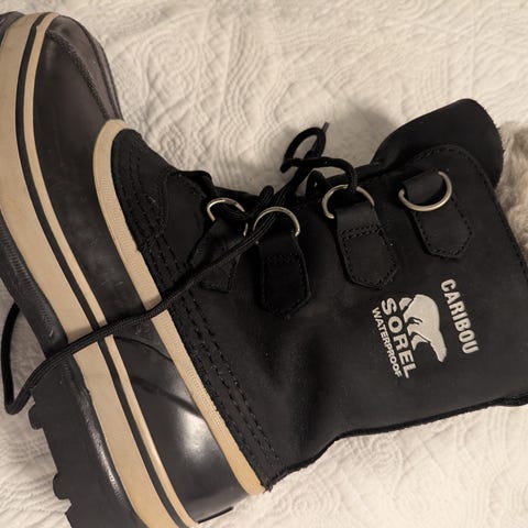 Sorel Caribou vinterstøvler i størrelse 40. Støvlene har en robust konstruksjon med isolert fôr for varme og komfort i kalde forhold. Yttersålen er laget for godt grep på snø og is, og støvlene er designet for å holde føttene tørre. Uttagbar innerstøvel.