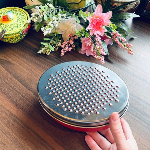Kjøkkenredskap for å rive opp / kverne hvitløk, urter og/eller ost. Velg kutte-, kverne- eller riveskive og vri rundt. :)