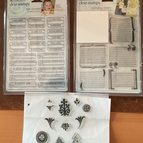 Selger stempler med bokstaver og bursdagstempler til å lime på klosser.