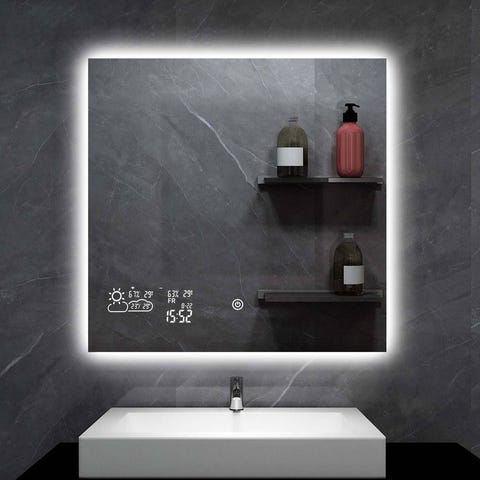 8 kantet smart speil med led lys med defog, klokke og av og på knapp til lyset.