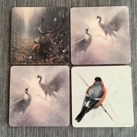 Vakre pyntetallerkener med oppheng bak. Et ørlite skår bak, se bilde.