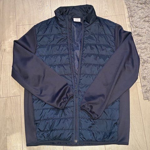 Pent brukt jakke som ikke brukes lenger fordi den er blitt for liten.