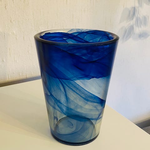 Kjempefin vase i koboltbått («Weidemannblå») fra Hadeland glassverk.