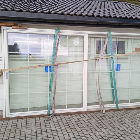 Dobbel Magnor kvalitets skyvedør 220 x 210 med alu ute og tre inne. Pent brukt og i god stand! Selges Kr 10 000,-