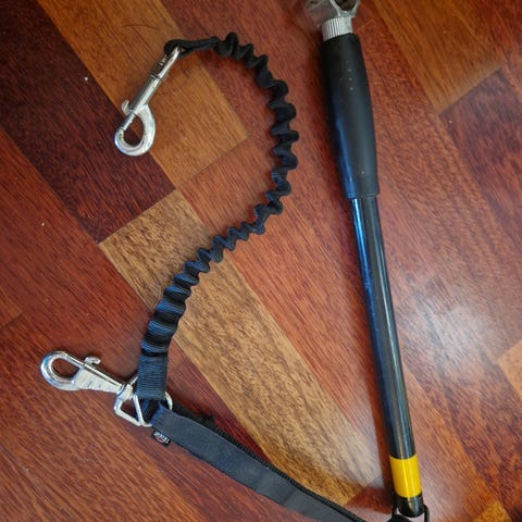 Springer til å feste på sykkelen. Vi brukte den til en Flat coated retriver. Har rustet litt, men fremdeles brukbar
