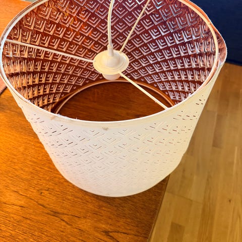 - 1 lampeskjerm av bast (kr. 0 - gis bort)