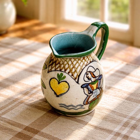 Vintage, liten keramikkvase i grønn fra øya Ischia, Italia.