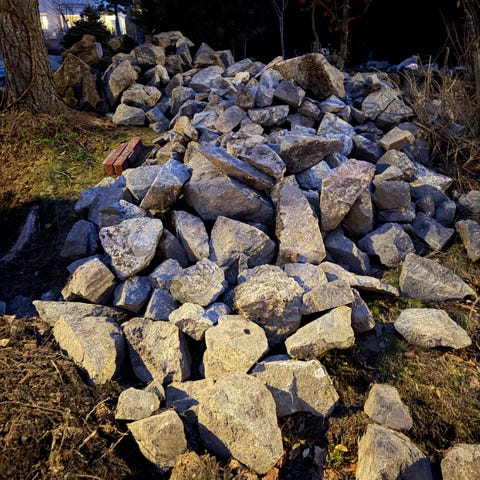 Gir bort flere lass med fin pigget stein/kult fra tomt samt fyllmasser. Kan brukes til parkering/vei og tilbakefyling.