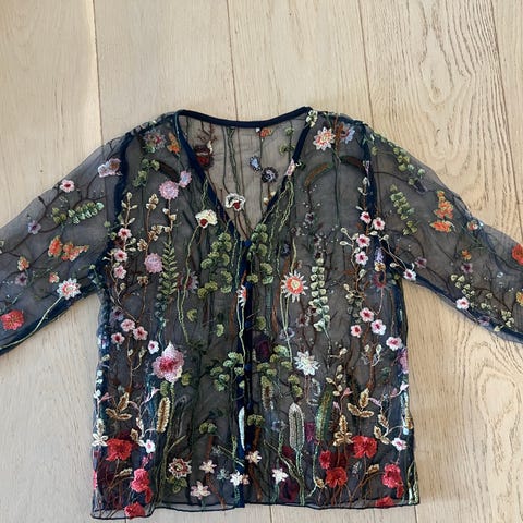 Svart gjennomsiktig bluse med blomster, ubrukt.