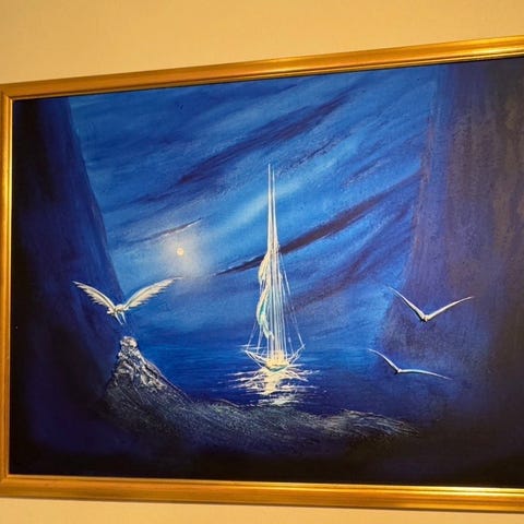 Maleri av Åse Johannessen. FRIHET UNDER ANSVAR. 94 X 134 CM. Til Salgs eller Bud.