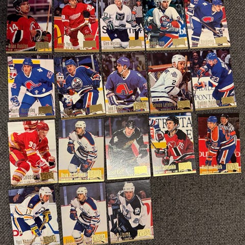 Selger mine Vintage hockeykort Premier/Fleer/Donruss fra starten av 90-tallet. Ca 45 kort i god stand. Usikker på pris, så kom med et bud. Så blir vi enige. Selges samlet.