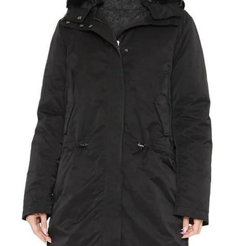 Jakken er pent brukt , men har blitt bittelite stygg etter en crossoverveske ved den ene lommeklaffen . Har ingen betydning for jakken og syntes knapt ikke , men har tatt det med i prisen for jakka .
