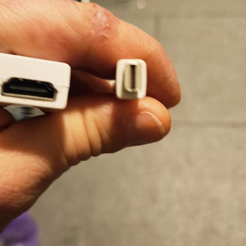 Jeg selger en Mini DisplayPort-HDMI adaptador. Kjøpte på Clas Ohlson og jeg bukte den en gang og har fortsatt beskyttelsen på (se på bildet). Den kan kobles til Mac og brukes til Tv, projektor, monitor m.m. Kan sende eller hentes på Lilleaker