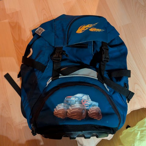 Skolesekk, merke Troll. 22 L. Den kan også brukes som ryggsekk.