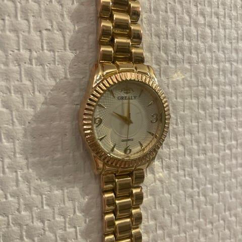 Fin hvit og brun dame klokke.