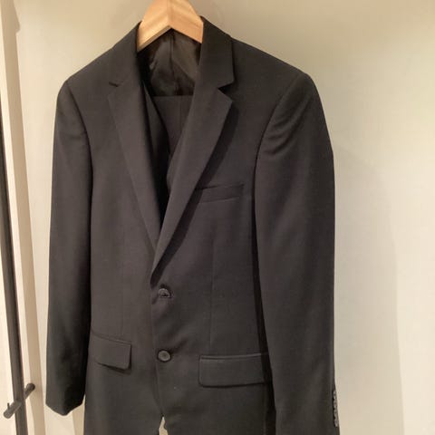 Selger helt ny dressjakke og dressbukse i svartfarge. Kjøpt hos Dressmann.