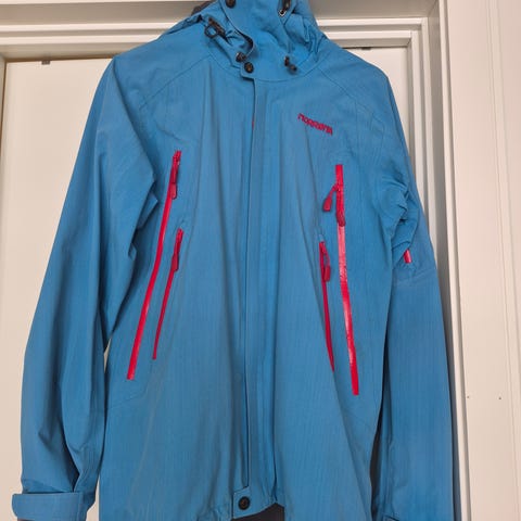 Bergans Oppdal Lady Jkt allværsjakke. Fargen er lys blå/turkis, str M. Glidelås og knapper, innstramminger oppe og nede, i tillegg til bak på hetten. Tre lommer med glidelås foran, en lomme på innsiden, en liten lomme på venstre arm. Kan strammes fremme på ermene med borrelås. Mulighet for lufting under armene. Veldig pent brukt.