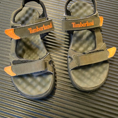 De ser nok mer slitt ut på bildene enn i virkeligheten, men er særdeles lite brukt. Omtrent ingen slitasje på logoen "Timberland" der hælen skal være på innsiden.