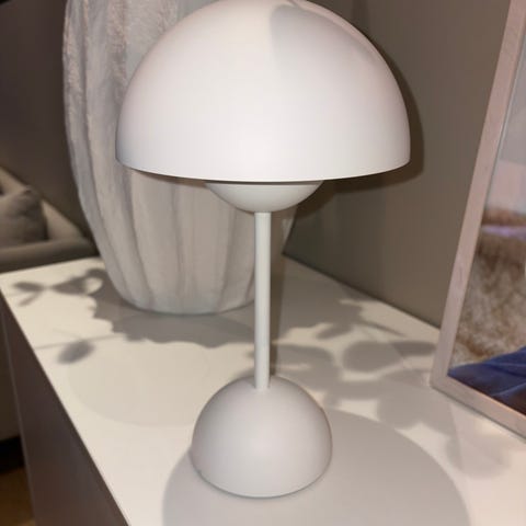 Lampen selges billig fordi den mangler takfestet (se bilde).