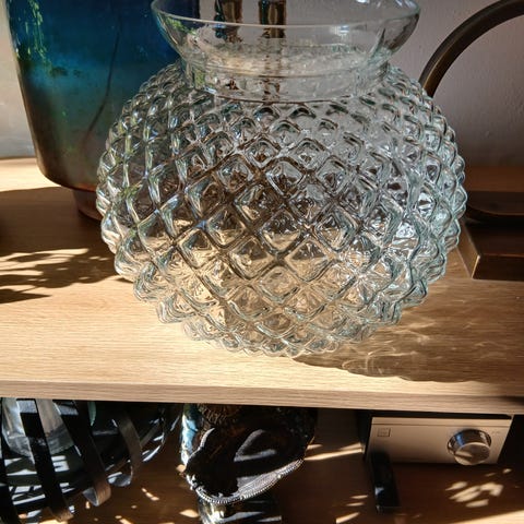 Dekorativ glassvase til salgs. Kan også brukes til lykt. Ny pris 499. Må hentes.