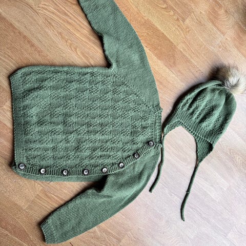 Brun strikkelue - pilot fra klompelompe - str 1 år. Pent brukt, fremstår som ny. Selges for 100 kr.