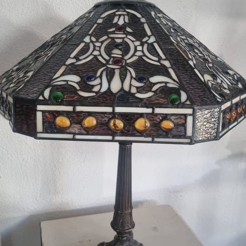 Pent brukt, lampe skjerm i keramikk som evt kan males i den farge man ønsker, eller Tiffany style som vist på bildet.