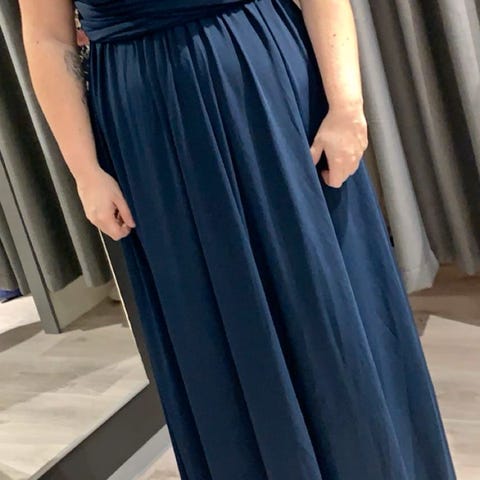 En nydelig festkjole, mørk blå og som er svært anvendelig til en festlig anledning. Du vil ikke angre på dette kjøpet😊