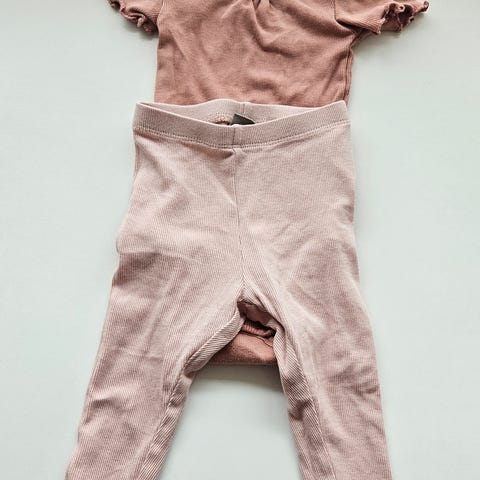 3 flotte bukser fra Wheat i str.68, 74 og 80. 100% bomull. Den blomstrete har hatt et tynt bånd i livet, men man ser ikke på buksen at noe mangler. Strikk i livet holder buksen på plass.