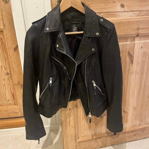 Meget pent brukt skinnjakke fra Zara Woman. Feminin form og passer både hverdag og fest.