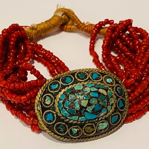 Et mesterverk! Kjede, håndmalt indisk kjede med ekte Carneol-stener.