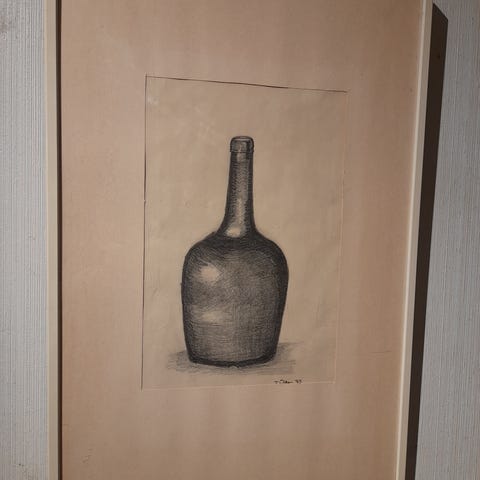 Det er laget av fargestifter. Kunstner Henry Vågsether. Mål B 51 x H 61 cm.