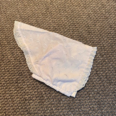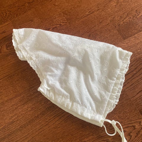 Dåpsslue med broderi og blondekant One size selges