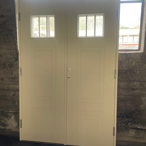 Feilbestilt ytterdør med overlysvindu