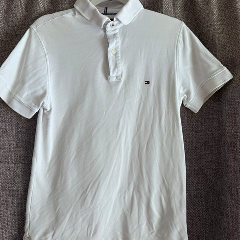 Pen marineblå pikeskjorte Merket Tommy Hilfiger. Deilig stoff og god passform. Står størrelse XL men er veldig liten i størrelsen og egner seg best som Small/Medium. Kun brukt er par ganger og er så god som ny.