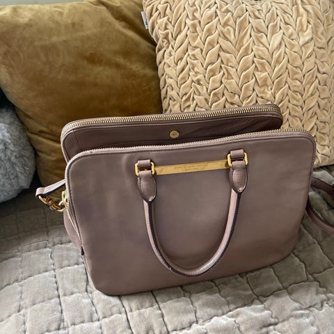 Vesken kan brukes i anledning både formell kontor og til fritids. Str, bredde 38 cm, høyde 28 cm. Sist bildet viser at den fint kan brukes til laptop. Ordinær pris 35 999 kr.
