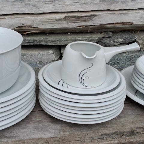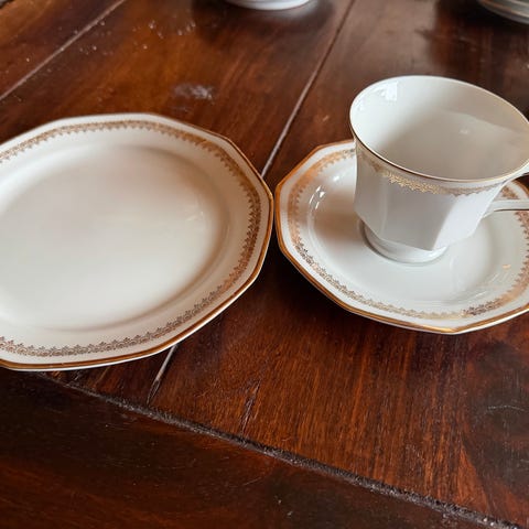7 hele sett , fløtesett. 1ekstra asjett 2 ekstra tefat.