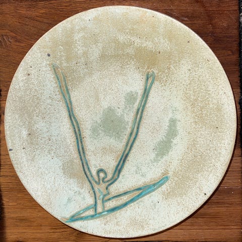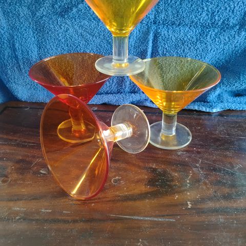 Søt rød skål på hvit stett. Høyde; ca 12 cm og diam: ca 10 cm. Noe ujevn glassmasse i topp, men ingen hakk eller skader.