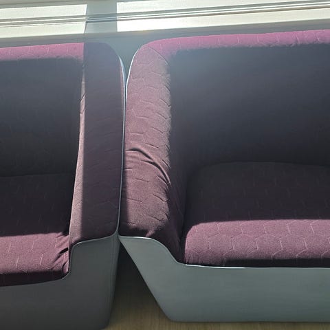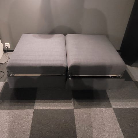 Morsomme sittepuffer i metallic-stoff fra Lammhults, modell Area, 2 stk selges s