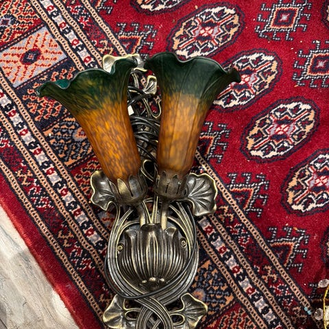Dekorativ vegglampe m 3 lamper i ulike vinkler. Messing og frostet glass over pærene. Pris pr stk. Kan ikke sendes, må hentes på Lura, Sandnes