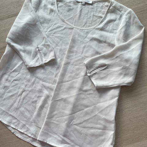 Topp fra Mango. Foran "silkeaktig" stoff, bak strikket stoff. Brukt ved kun én anledning. Ingen skader/slitasje. Som ny. Størrelse S.