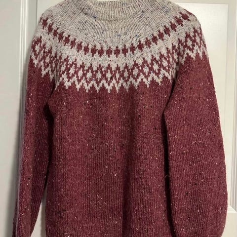 Eskimogenser strikket i alpakka fra Sandnes garn. Fargene: grå, grønn og terracotta.