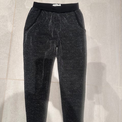 Lite brukt, svart penbukse med hvite prikker fra Name it selges for 150,-kr. Buksa har litt tykt stoff. Se bilde for detaljer.