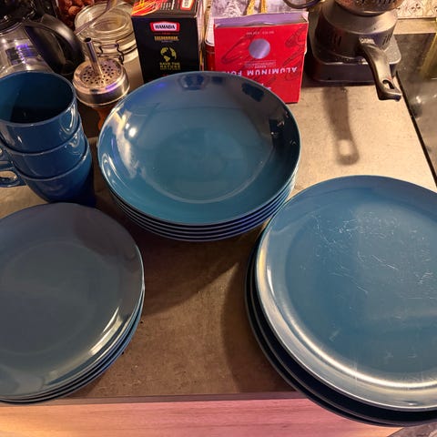 Vintage servicedeler med ferskenmotiv fra IKEAs serie Accenten, designet av Marguerite Walfridson.