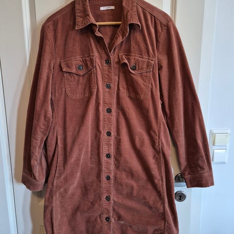 Lekker legg/ankellang kjole med lange ermer. Strikk og belte i livet, liten v-hals.